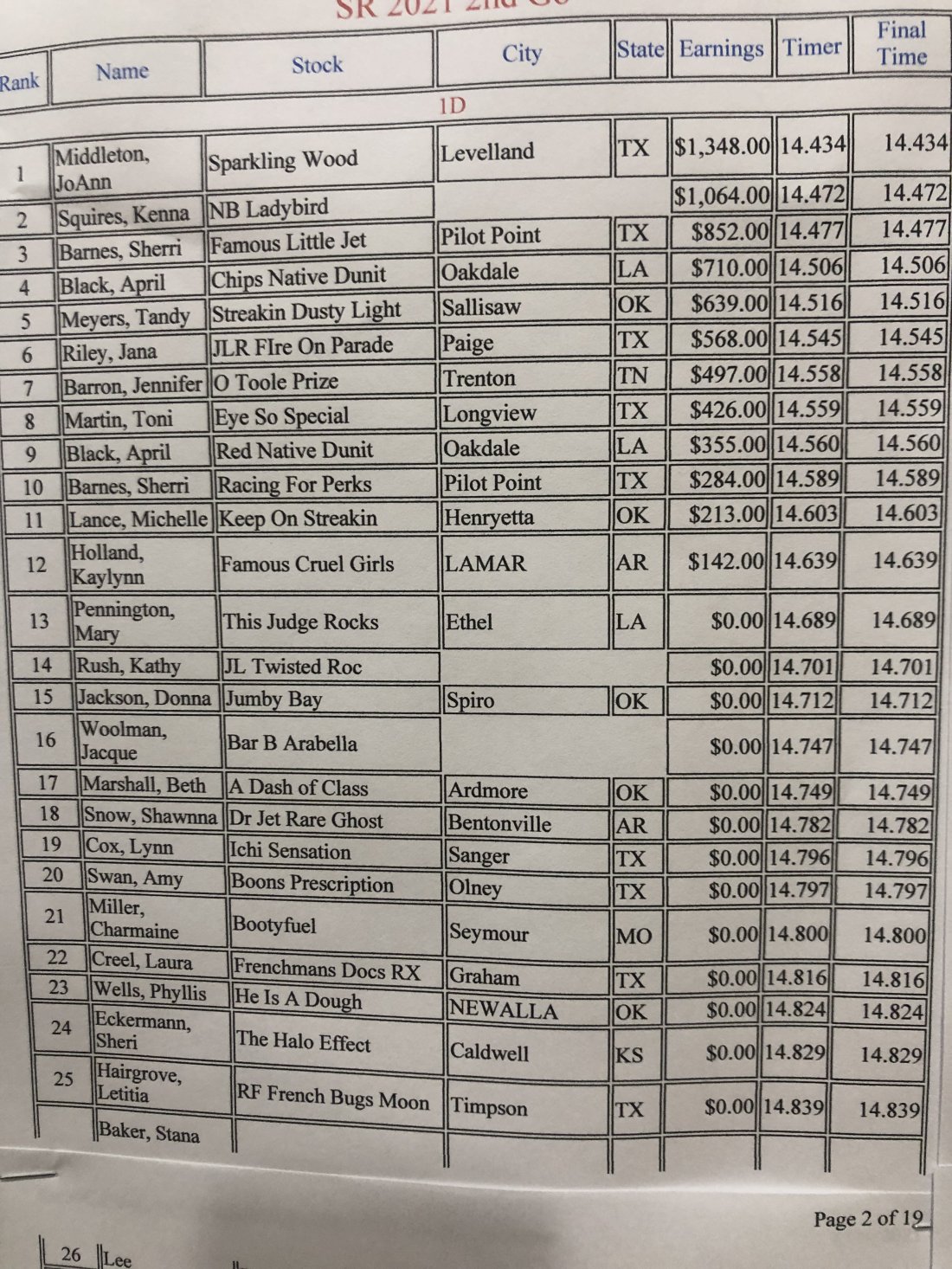 Famous Little Jet placing at the Sr World Finals with a 14.8